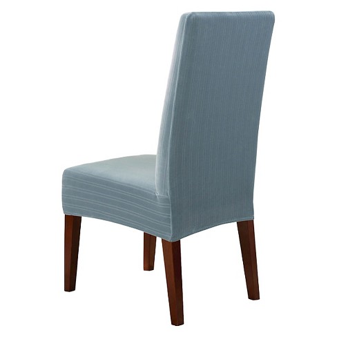 An elastic hook and loop closure and tab under the seat keeps the cover in place. Twill ticking stripe dining chair long slipcover. (0.0) out of 5 stars. 4.9 out of 5 stars with 18 ratings. Jiuhong stretch short dining chair protector cover.
